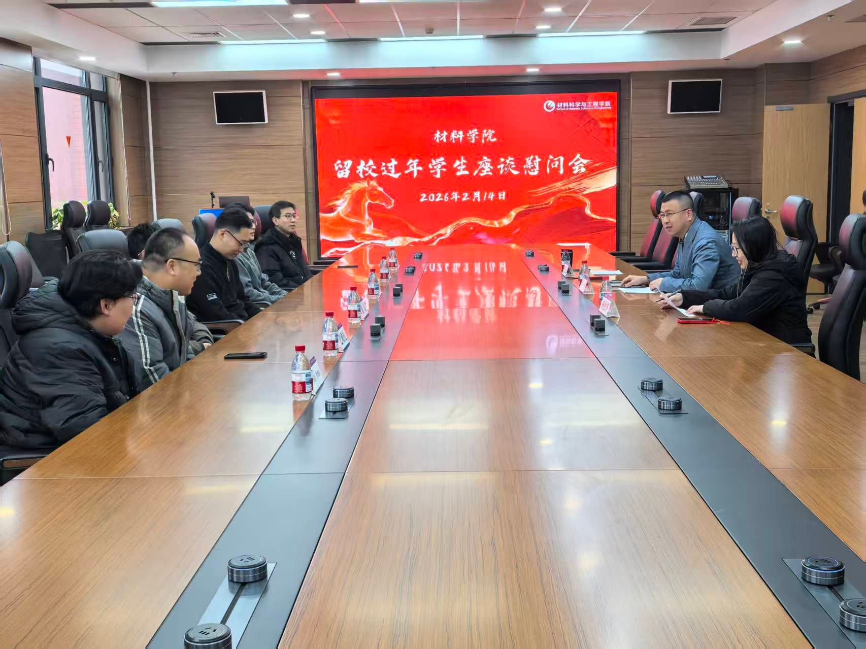寒冬送暖,腊月传情。2月14日上午,在新春佳节即将来临之际,材料学院在知远楼A304会议室举办留校过年学生座谈慰问会。学院院长卢一平,副书记兼副院长杨艳华,学办主任张连成与留校学生欢聚一堂,共话成长,喜迎新春。