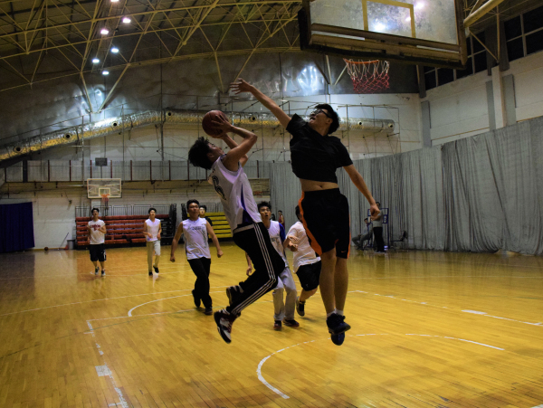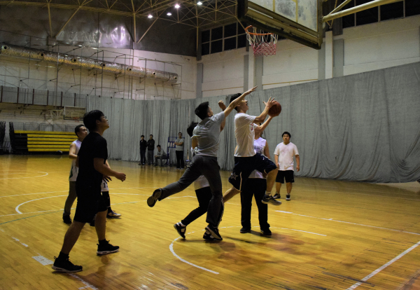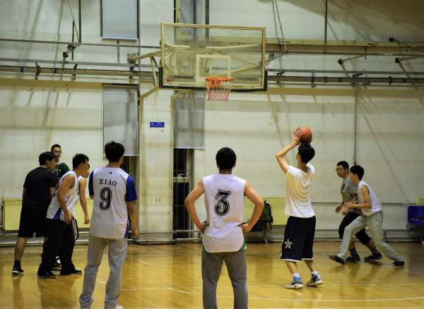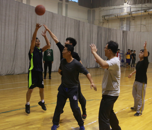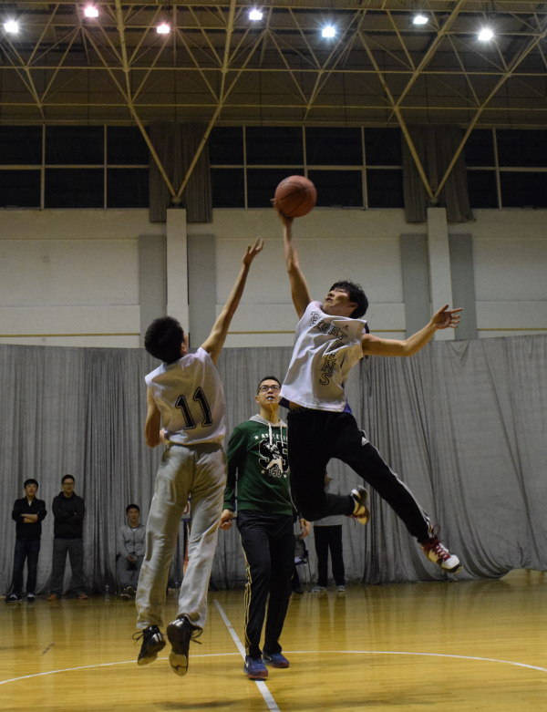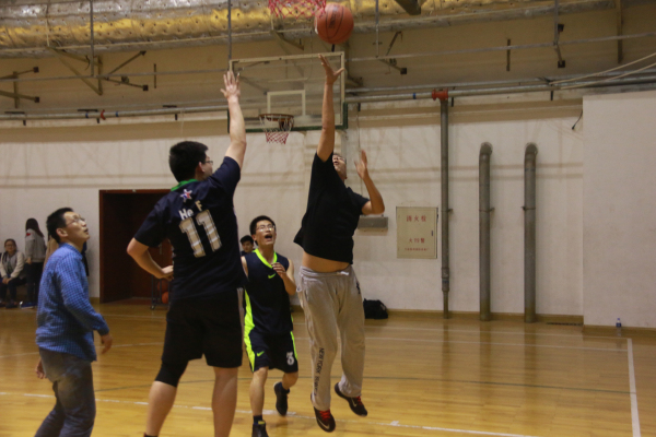 比赛一开始,学生代表队在窦智老师的带领下,凭借身体优势,突破教工队的防守,以12-4强势开局。教工队虽及时调整场上球员,积极防守的同时不断尝试有效的进攻策略,但依旧以21-10落后。随时间的推移,学生代表队体力消耗过度,而教工队良好的上场球员安排使其逐渐具备优势,中场结束前教工队将比分追至只差五分。