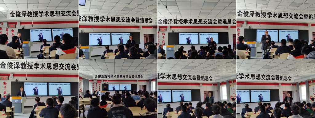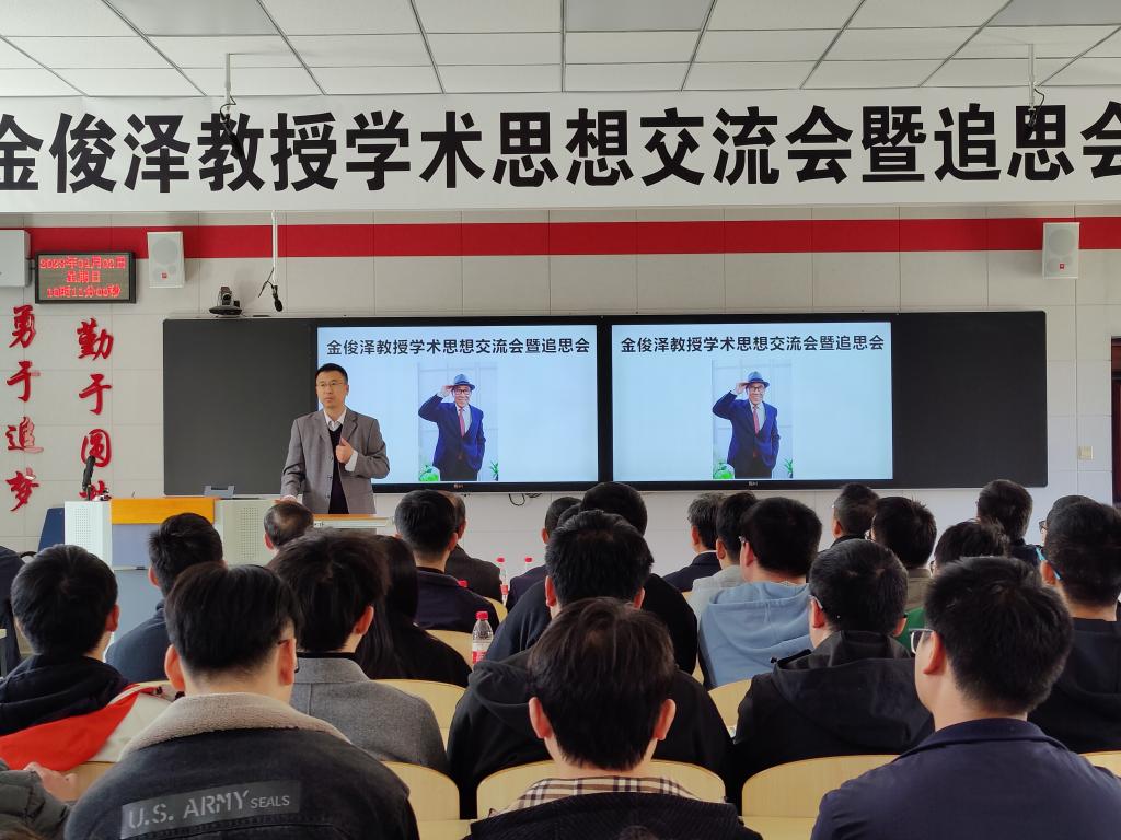 李廷举教授主持了讨论交流环节,多位老师纷纷发言,深情回忆了与金俊泽教授相处学习的情谊。李老师首先表示对金先生最深刻的印象是他终身学习的精神,讲述金先生年岁渐长后仍坚持自学有限元、CAD等知识,也希望大家能保持对知识的探索欲不断学习;姚山教授回忆学生时代组内艰苦奋斗却也温暖轻松的日子,表示将当下的点点滴滴做好一定会对未来有帮助;郝海教授勉励大家学好语言、学好专业、培养爱好,能坚持想法敢于发言;张维平教授回忆了金先生对自身和学生严格要求的治学态度;王同敏教授讲述了金先生严谨治学的工作风格;张兴国教授以缘分一词展开回忆了与金先生日常相处的趣事,风趣幽默的语言中表达了对金先生的怀念;曹志强教授讲述金先生对专业方向创新的看法,鼓励大家要敢于创新、善于创新;房灿峰教授以自身论文答辩经历展开,希望同学们严谨治学。