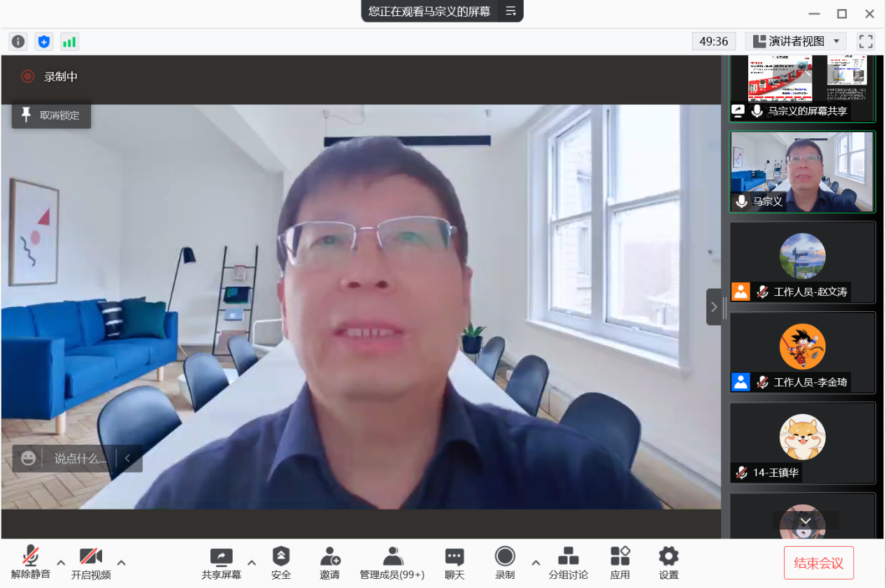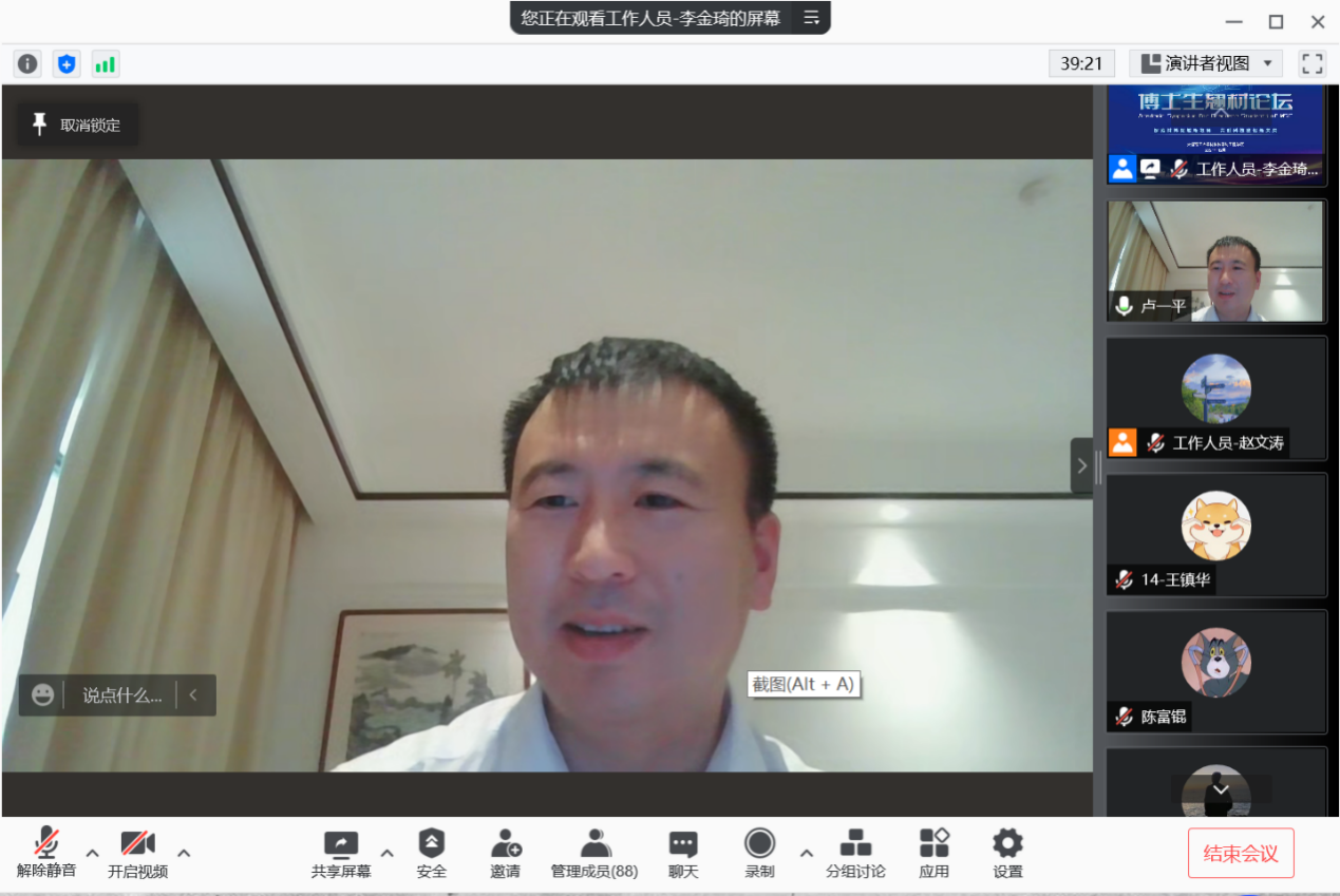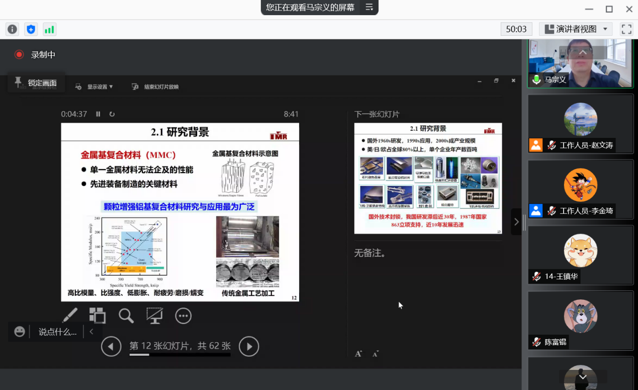 材料学院副院长卢一平教授主持本次活动,中科院金属研究所研究员马宗义、卢磊受邀作专题报告,学院各课题组的20余名老师代表线上出席,并且吸引了近300名的博士、硕士研究生的参与。