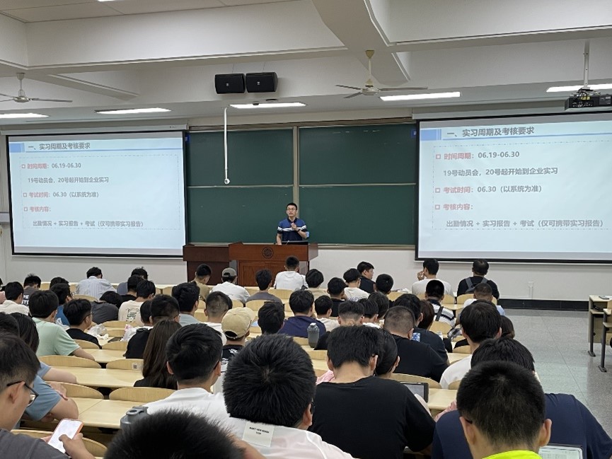 2023年6月19日上午,我院在综合教学1号楼260教室召开2023年本科生认识实习及生产实习动员会,全体实习学生、教学副院长陈国清教授及实习带队教师出席本次动员会。