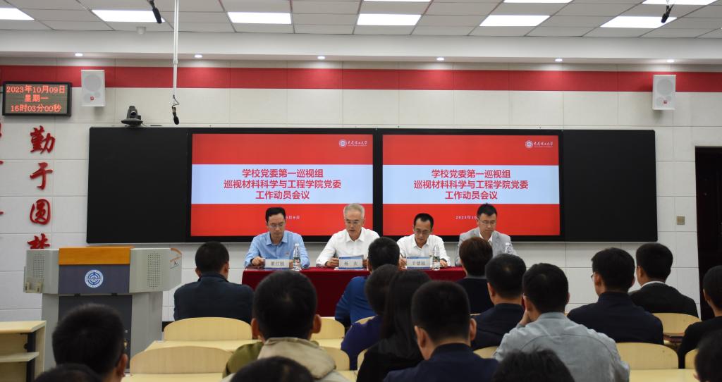 10月9日,根据学校党委巡视工作统一部署,学校党委第一巡视组巡视材料科学与工程学院党委工作动员会召开。会上,巡视组组长杨庆作动员讲话,材料科学与工程学院党委书记董红刚作表态。会议由材料科学与工程学院院长卢一平主持。巡视组副组长及成员,学院党政班子成员、纪委委员、基层党支部书记、各专业负责人、教师及学生代表参加会议。