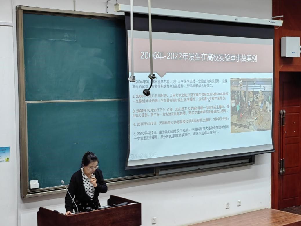 随后,侯晓多老师讲解了实验室安全及注意事项。她以大量真实的安全事例为切入点,告诫同学们一定重视规范,培养安全意识和习惯;在开展实验之前,熟悉实验环境、设备、危险源等,定期排查安全隐患并制定紧急预案,确保安全。