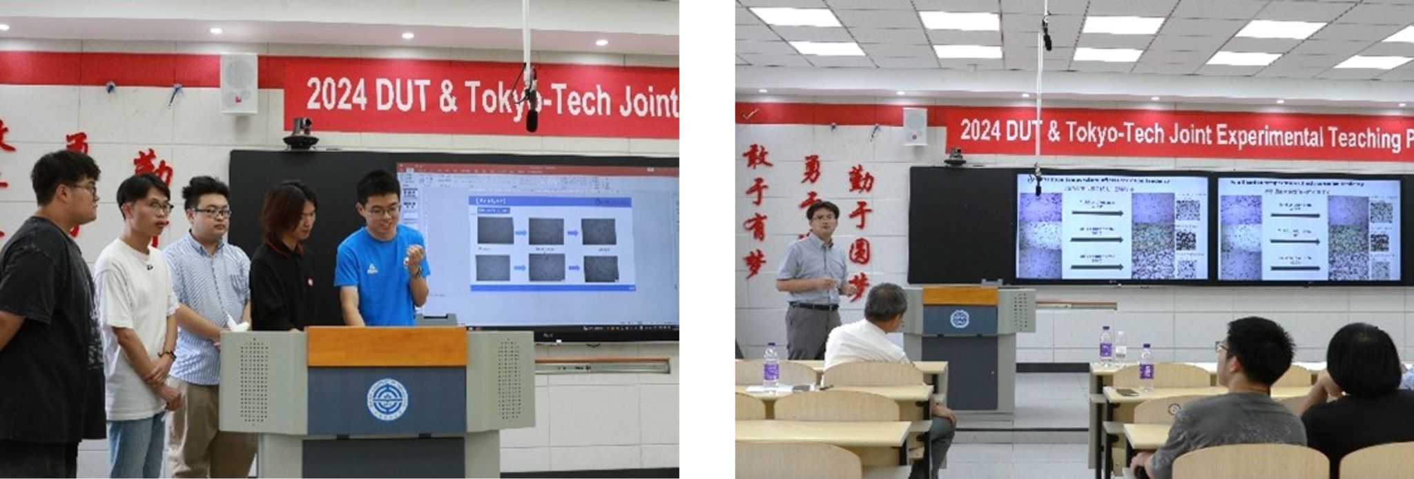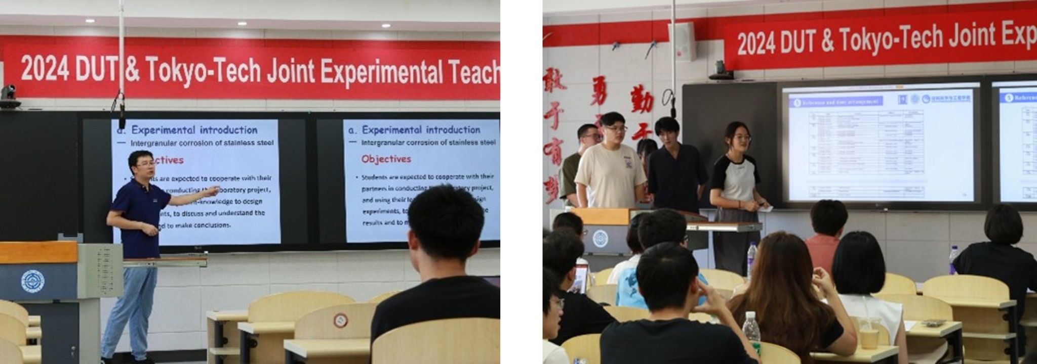该联合实验教学项目已开展了6届,此次由材金专业24人、东京工业大学6名本科生共同参与完成了第七届联合实验教学项目。其间,程从前副教授、戚琳高级实验师、史淑艳工程师、白玉副教授等教师参与了实验指导和设计工作, 春本高志副教授为本次东京工业大学带队指导教师;王清教授和赵杰教授分别参与了实验开题和答辩环节;闵小华教授负责了东京工业大学学生与日强班学生课堂交流环节。