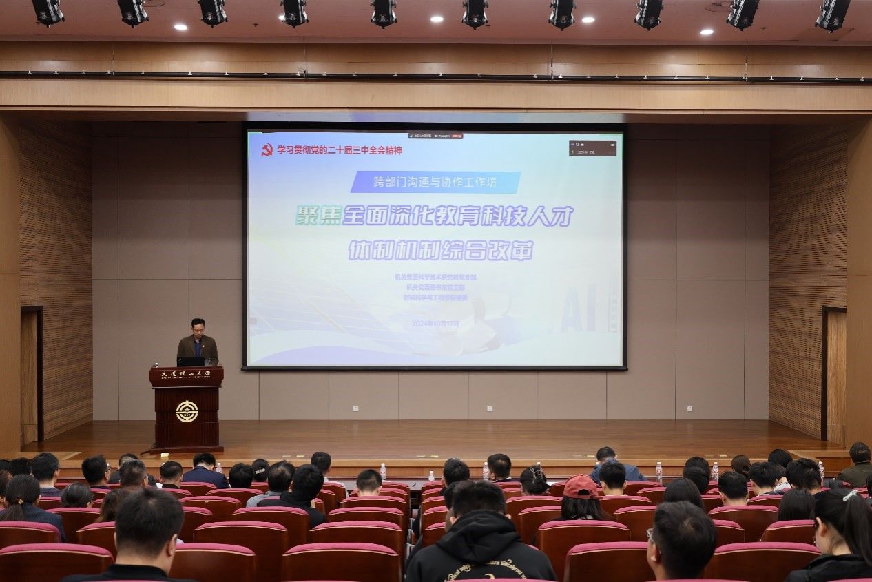 为进一步深化学习党的二十届三中全会精神,充分发挥党建引领作用,聚焦全面深化教育科技人才体制机制综合改革,加强与部门间的管理协同,10月17日下午,材料科学与工程学院党委与机关党委科学技术研究院党支部、机关党委图书馆党支部在伯川图书馆报告厅,联合启动跨部门沟通与协作工作坊。三家单位党政领导班子成员、各党支部委员及全体教职工参加学习活动。活动由图书馆副馆长陶露主持。