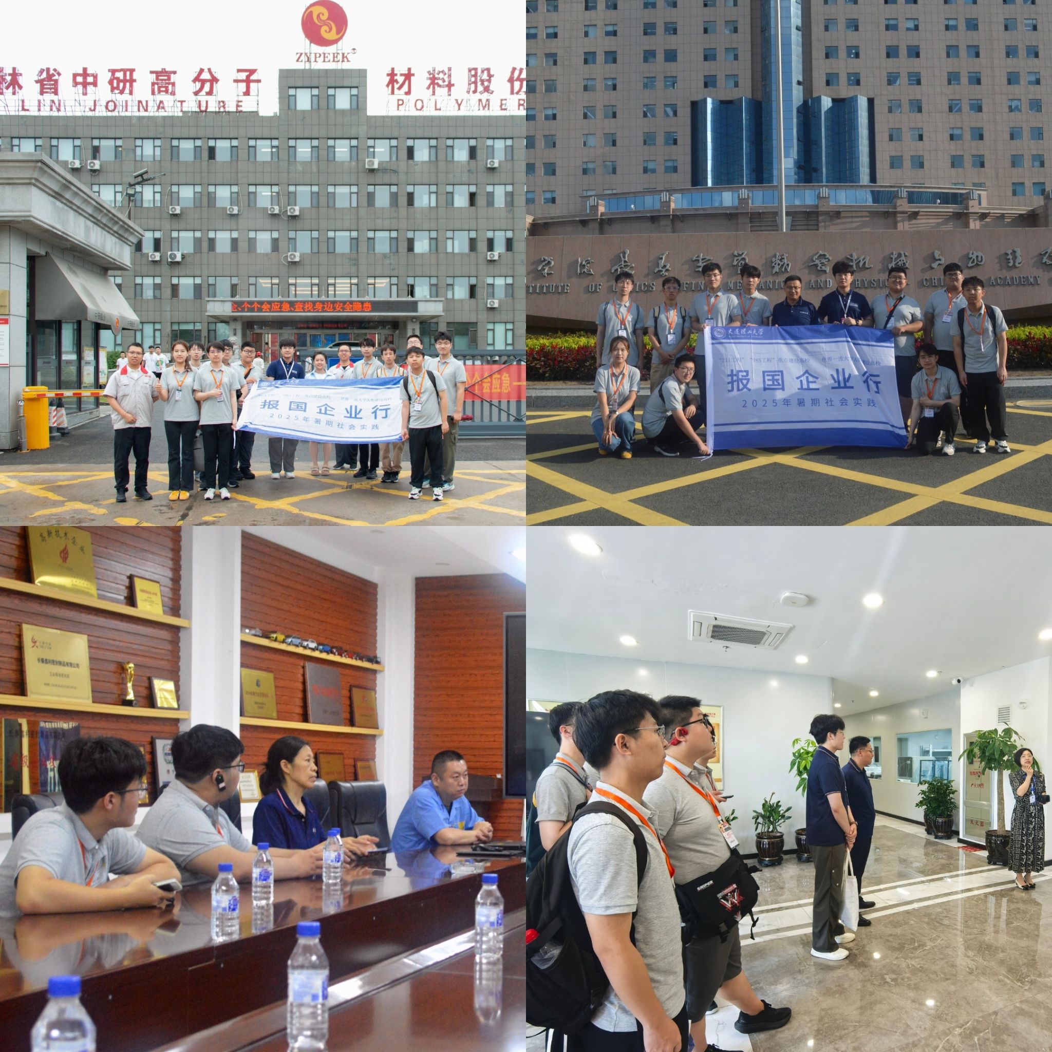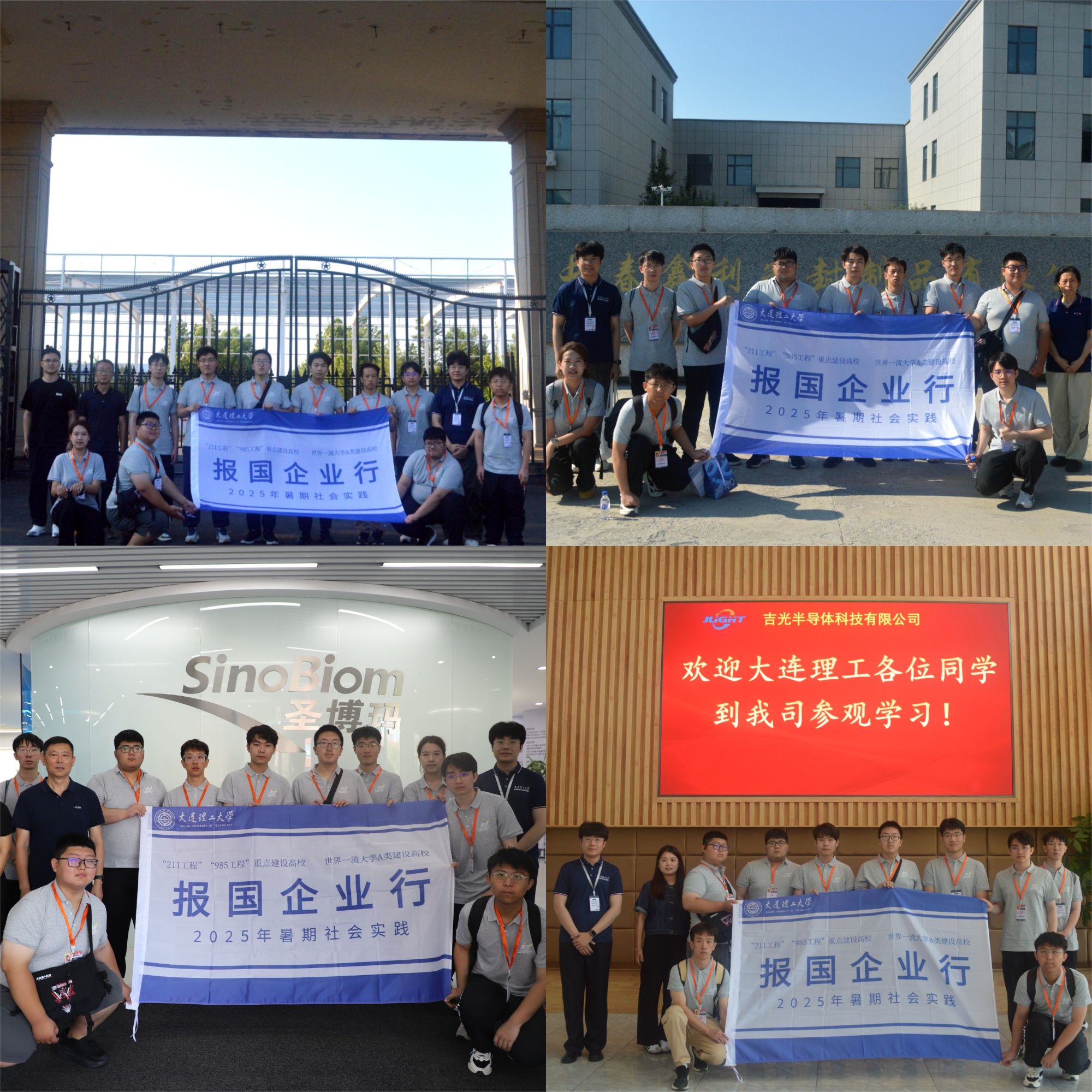 本次实践走访了长春市八家具有代表性的企业与科研院所,涵盖半导体、生物材料、密封技术、机械制造、汽车工业及高分子材料等领域。实践队先后前往吉光半导体科技有限公司、长春圣博玛生物材料有限公司、鑫利密封制品有限公司、吉林省吉通机械制造有限责任公司、中国科学院长春光学精密机械与物理研究所、一汽-大众汽车有限公司、中国第一汽车股份有限公司及吉林省中研高分子材料股份有限公司。