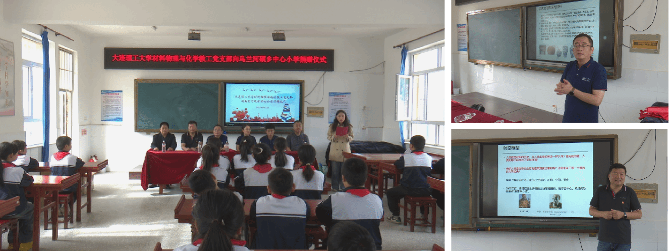 活动伊始,材料物理与化学教工党支部书记蒋丽介绍了大连理工大学与乌兰河硕乡携手走过的17年历程,接着给同学们讲解了“什么是材料?”,“材料与人类文明的关系?”,表明材料是工业的基石,是科技创新的先导。激励同学们勤奋学习,健康成长,自强不息,矢志报国。