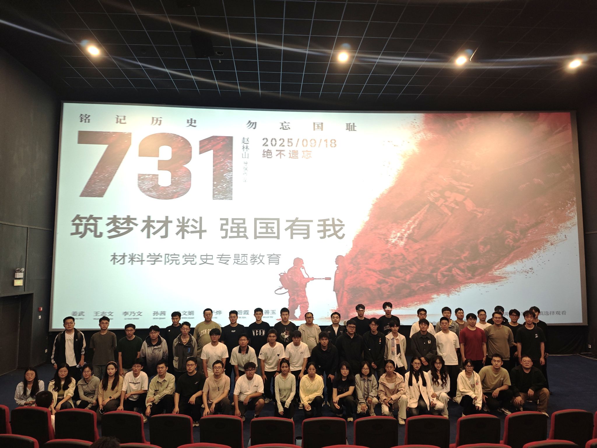 为深化党史学习教育,引导党员及入党积极分子铭记历史、缅怀先烈,传承红色基因,大连理工大学材料学院于 9 月 26 日晚 7 点组织开展党史专题教育观影活动,集体于影院观看影片《731》。培训对象涵盖学院全体支委、预备党员、发展对象,以及所有入党申请人,旨在通过影像力量重温历史,强化理想信念教育。