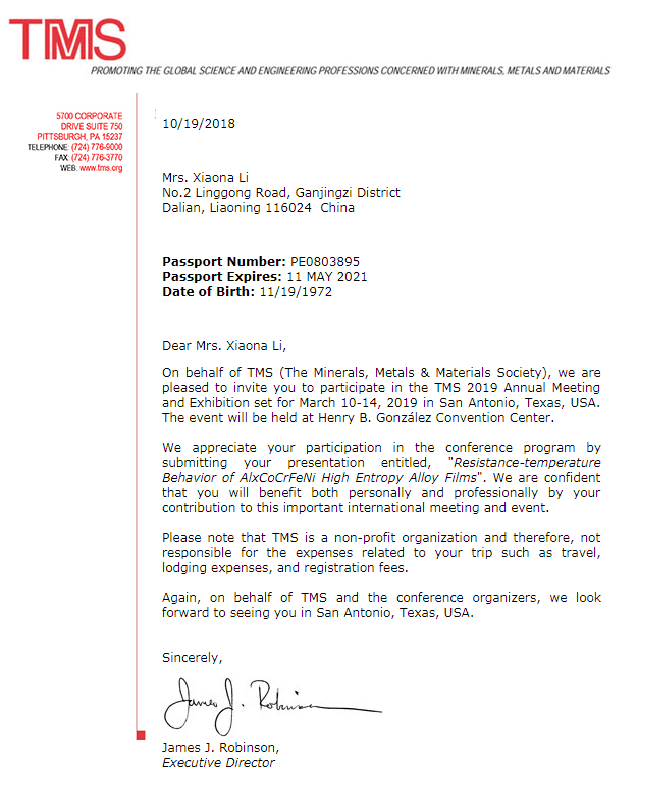 应美国矿物,金属和材料协会邀请,我单位王清/李晓娜拟赴美国进行学术交流。现将该团组拟出访情况公示如下: