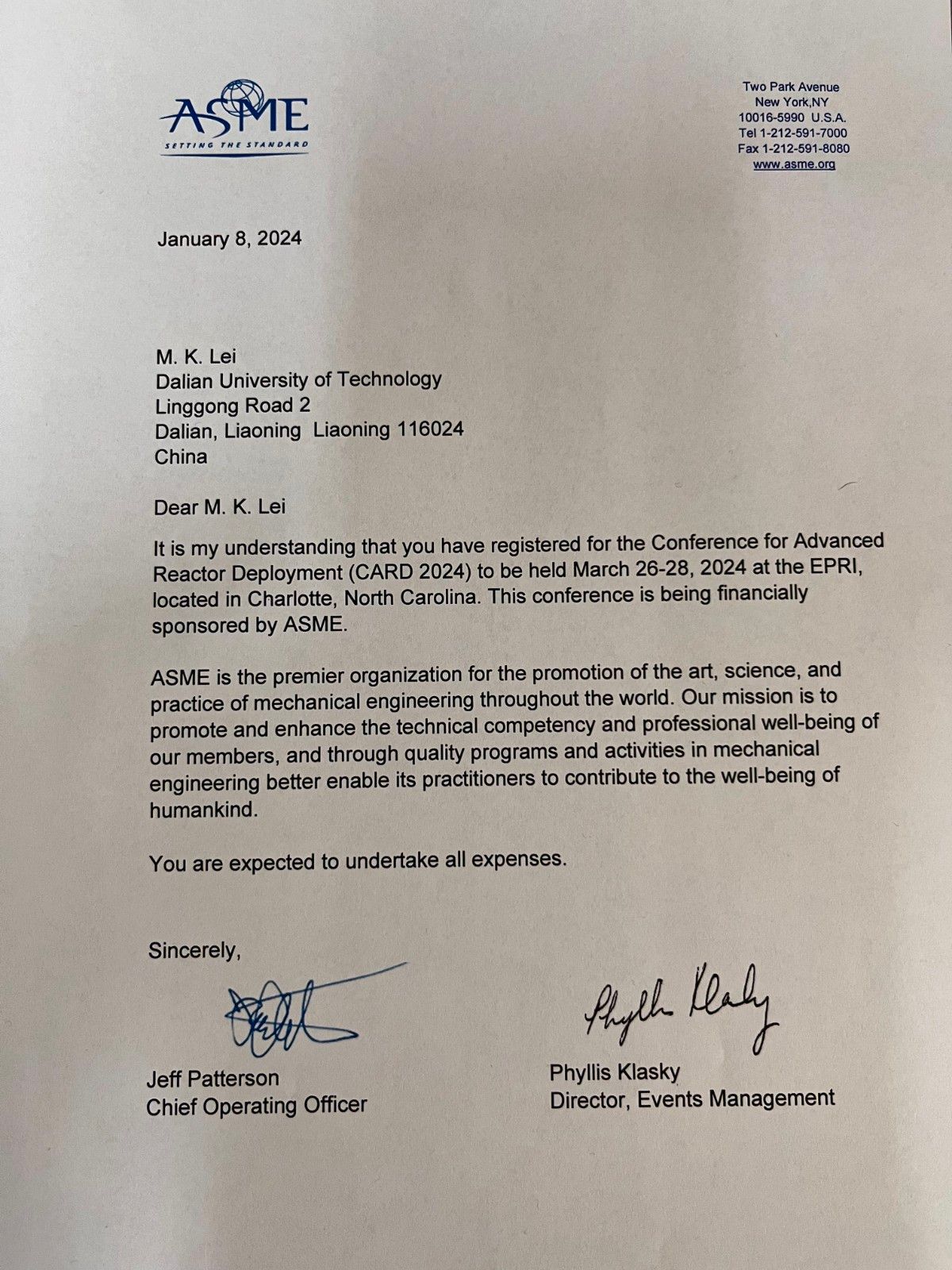 2024-03-27 | 美国 | 北卡罗来纳 夏洛特 | 参加2024届CARD (Conference for Advanced Reactor Deployment) ASME先进反应堆部署会议 |