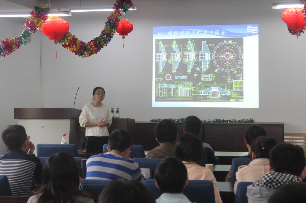 2016年4月26日上午,沈阳鼓风机集团股份有限公司高级工程师包翠敏博士走进材料学院本科生教学课堂,在材料馆3楼报告厅为2013级金属材料工程专业的学生带来了精彩的《金属腐蚀与防护工程案例教学》。