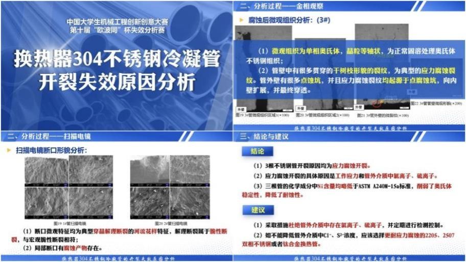 1、本科生创新赛:换热器304不锈钢冷凝管开裂失效原因分析