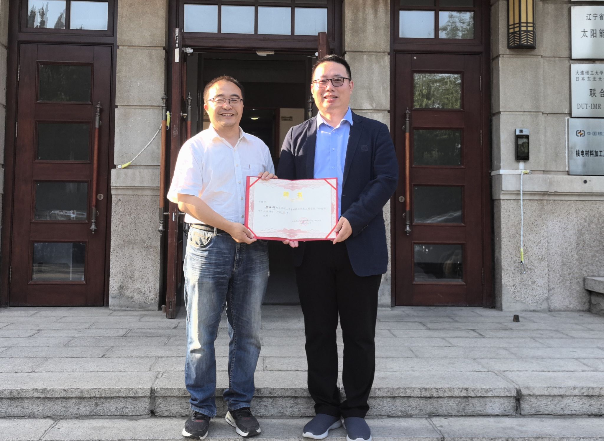 学院副院长董旭峰教授为梁栋科校友颁发材料学院“知远讲堂”讲师聘书。