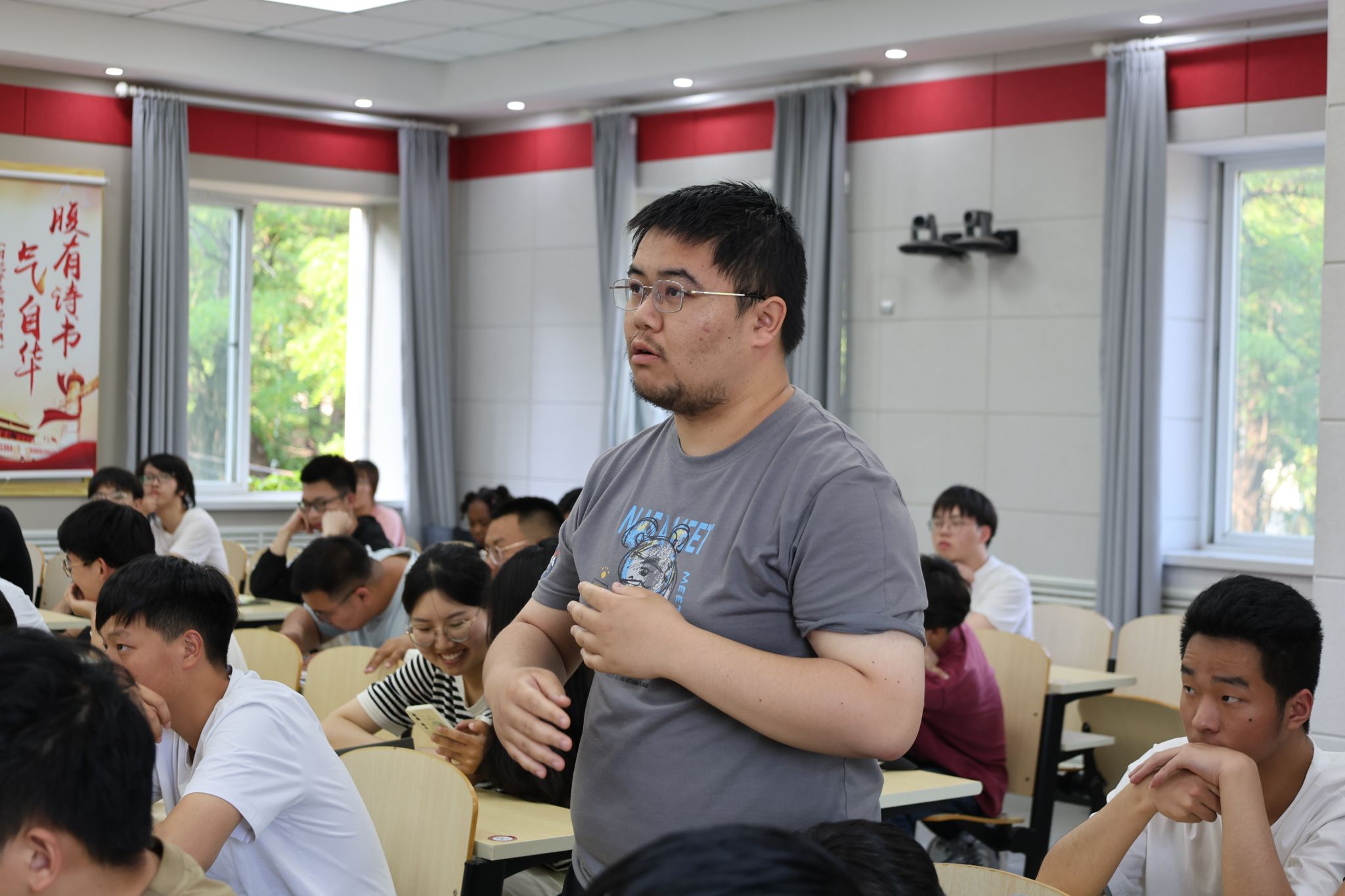 最后,梁栋科校友与参会师生进行互动,回答师生关于创业、行业发展、科研学习等方面的问题。