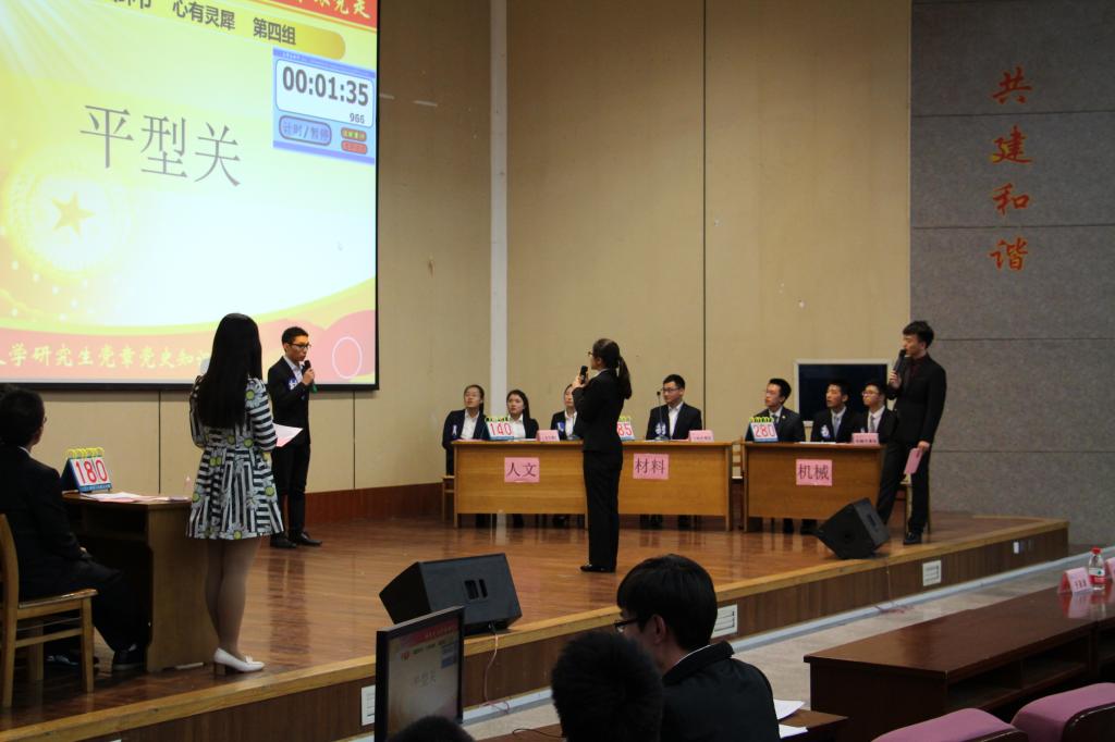 4月21日,大连理工大学研究生第四届党章党史知识竞赛落下帷幕。本届比赛由校党校和党委研究生工作部联合举办,旨在深入贯彻落实党中央关于开展“两学一做”学习教育工作的精神,以赛促学,提高研究生的党员意识和党性修养。此次比赛,材料学院派出了由王振民、邢方圆、许庆爽3名同志组成的参赛代表队,经过预赛与决赛2轮的激烈争夺,获得了团体第二名的好成绩。