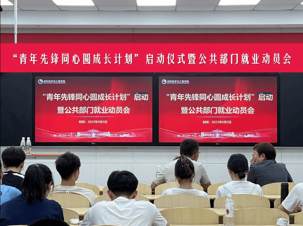 为深入贯彻落实习近平总书记重要指示精神,更好地为公共部门培养、遴选和输送优秀人才,材料学院学生党建服务中心于2023年9月5日在材料馆党建智慧教室成功举办了“青年先锋同心圆成长计划”启动仪式暨公共部门就业动员会。出席本次会议的嘉宾有:学校党委组织部廖春科主任、材料学院党委组织员于聪聪老师,材料学院2019届优秀校友张远远。会议由党建中心主任孙珞茗主持。