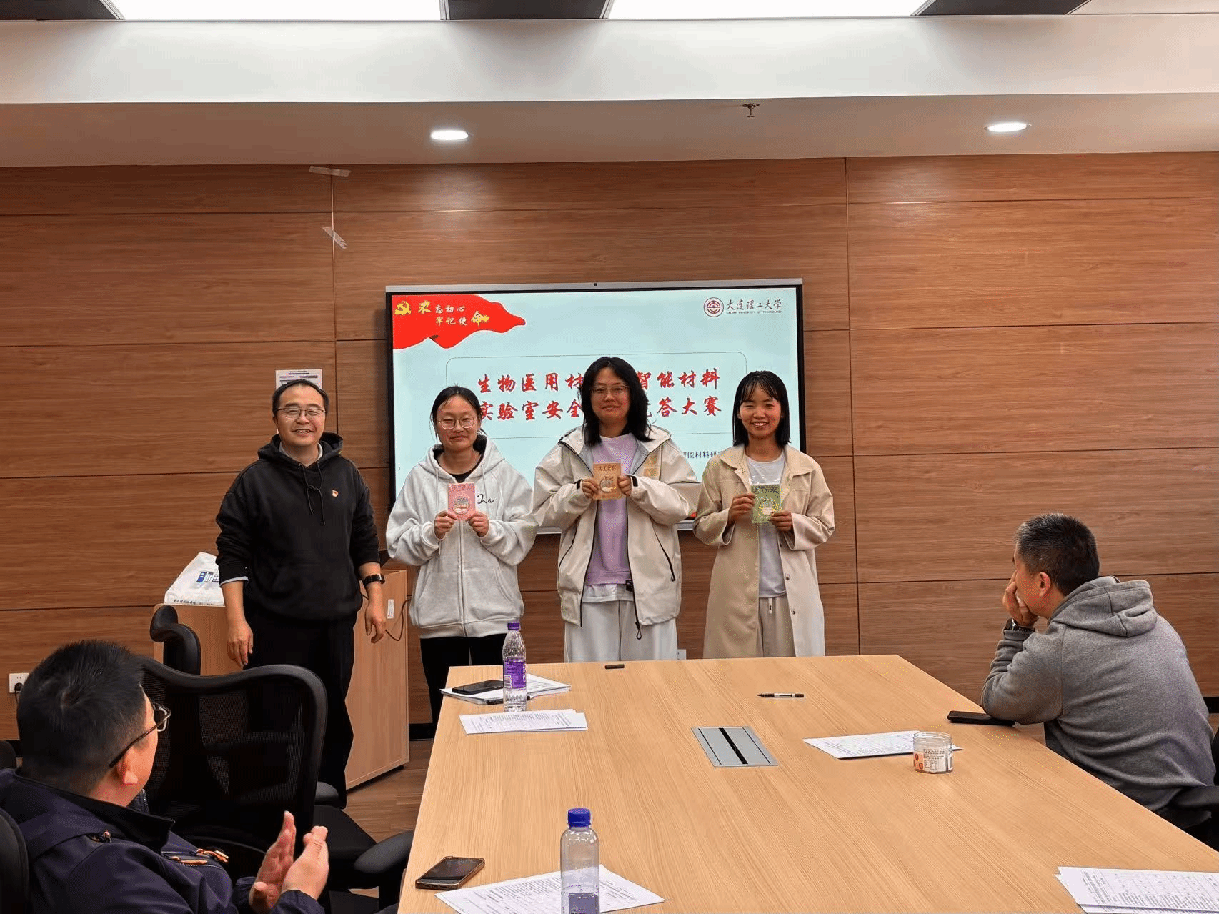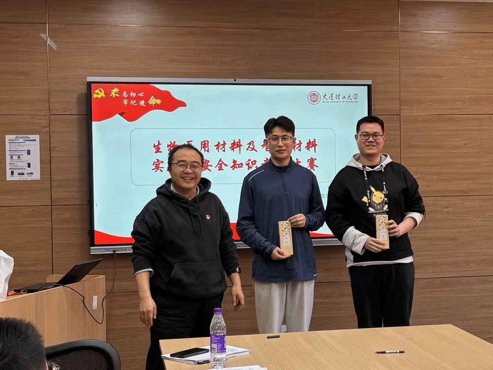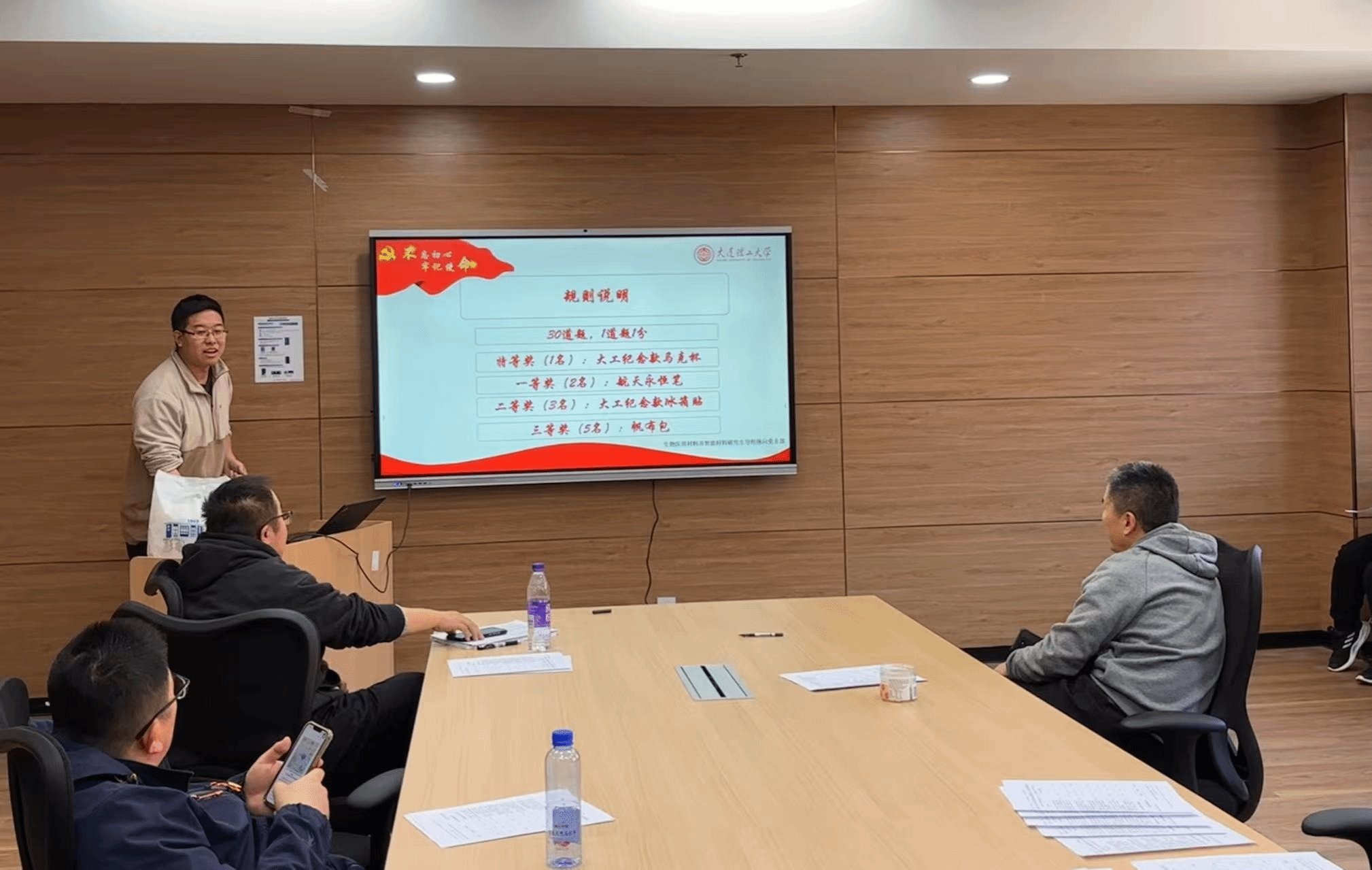 为了促进推动国家安全意识深入人心,筑牢“安全从身边做起”的意识,支部针对课题组实验室安全管理,开展安全知识竞答,结合研究生导师纵向党支部日常息息相关的实验室仪器使用规范、危化品管理规范等专业领域,拟定了30道复合型试题。随着开始按钮启动,支部全体成员积极扫码答题,现场气氛热烈。经过激烈角逐,分别评选出特等奖及一、二、三等奖,由党支部书记董旭峰同志为获奖者颁发大工文创马克杯、钢笔、冰箱贴等奖品。通过竞赛答题引导和促进支部成员学习并掌握国家安全法律法规知识,着重加强实验室安全规范,大家对此呈现出饱满的学习热情。
