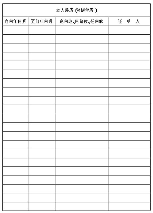 8.“本人经历(包括学历)”从上小学填起,起止年月要衔接。“在何地、何单位”要写全称。“任何职”应写明主要职务。参加电大、函大、夜大、职大、自学考试等学习的,都应填写;取得学位的在相应栏目中注明。“证明人”填写熟悉本人情况的人或一同学习、工作过的人。